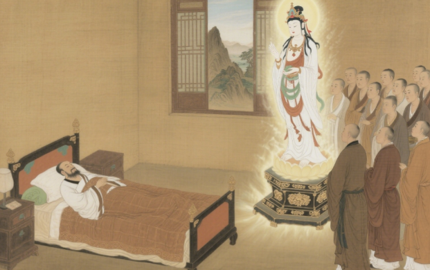 从他和多位声闻弟子、菩萨「过招」的记录来看,他所体悟的境界,远在众人之上;他也屡次展现不可思议的神通,令在场众人又惊又喜。身为在家居士的他,怎么会有这么深厚的修行呢?一直到经文后段,佛陀才为众人解惑。原来维摩诘来自妙喜国,早在不动佛座下已成为大菩萨,他是为了救度众生才来到娑婆世界的。